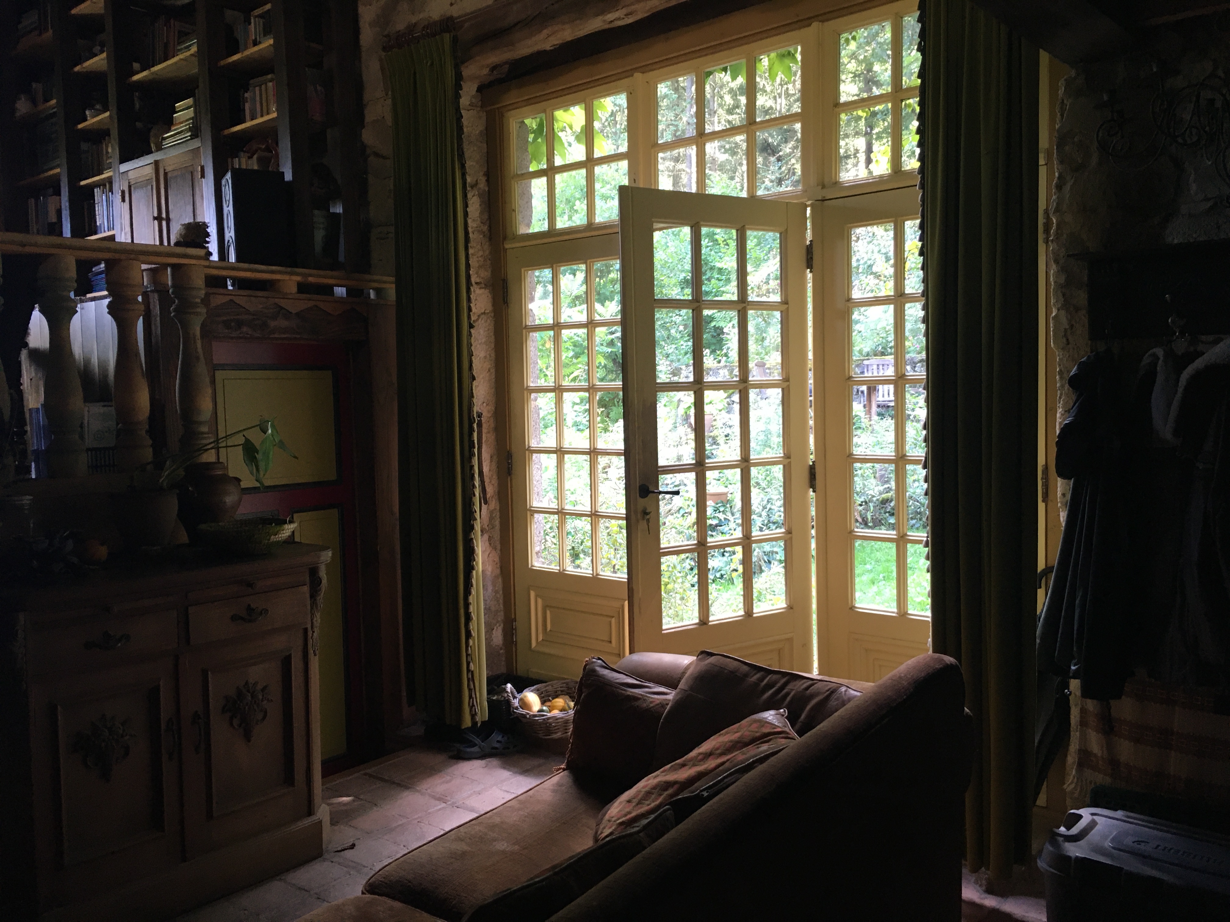Doordat het huis tegen een berg aanstaat is niets gelijkvloers. De schuur ligt lager dan de woonkeuken en de stal ligt nog weer wat lager. Voor mensen die slecht ter been zijn is het allemaal best wel een opgave, overal trapjes.